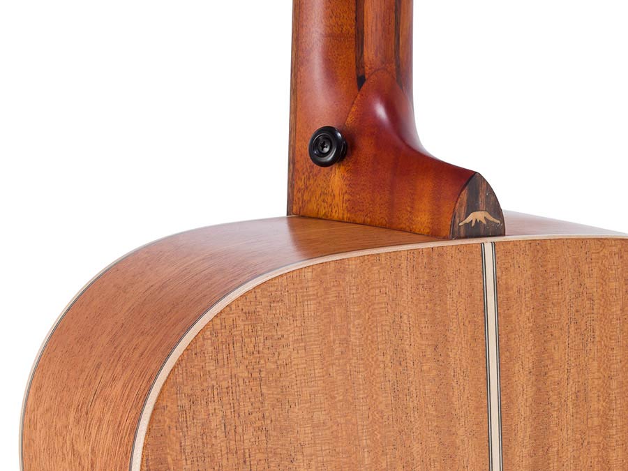 BAT models couple a solid Sitka spruce top with premium mahogany back and sides. Sitka spruce is the 1st choice of most players for its articulate, clear tone and prolonged sustain. Compensated by the warmth and mellowness of the mahogany back and sides and further boosted by the innovative ToneFlow bracing system, these guitars sport crystal clear trebles, sonorous mids and a warm bass.