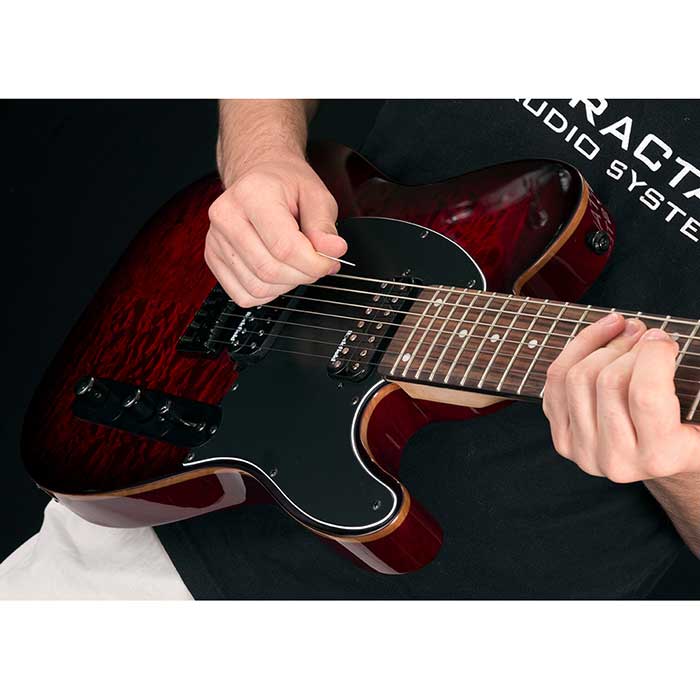 We started from scratch to develop the 507X. We wanted to give our extended range players a feature-packed, great-sounding 7 string. In developing this instrument, we focused on the feel of the neck, increased access to the high frets, and enhanced sonic options. Together, these priorities produced a 7-string that sounds terrific and feels natural and intuitive. You will love the sound and the sonic options on the 507X. We used specially-voiced Rockfield SW7s and then expanded the tone options with our Great 8 wiring mod. Use the provided push-pull pots to transition from the full throat sound of these humbuckers to a single coil classic tone. The 507X brings everything to the table in terms of feel and performance and looks like a rock star doing it with either a Satin Black Wash finish or a Black Cherry Burst.