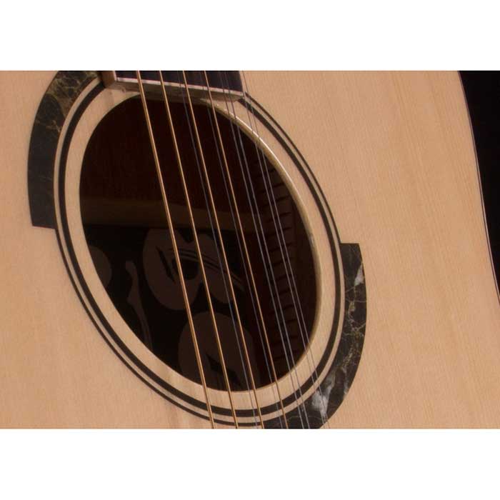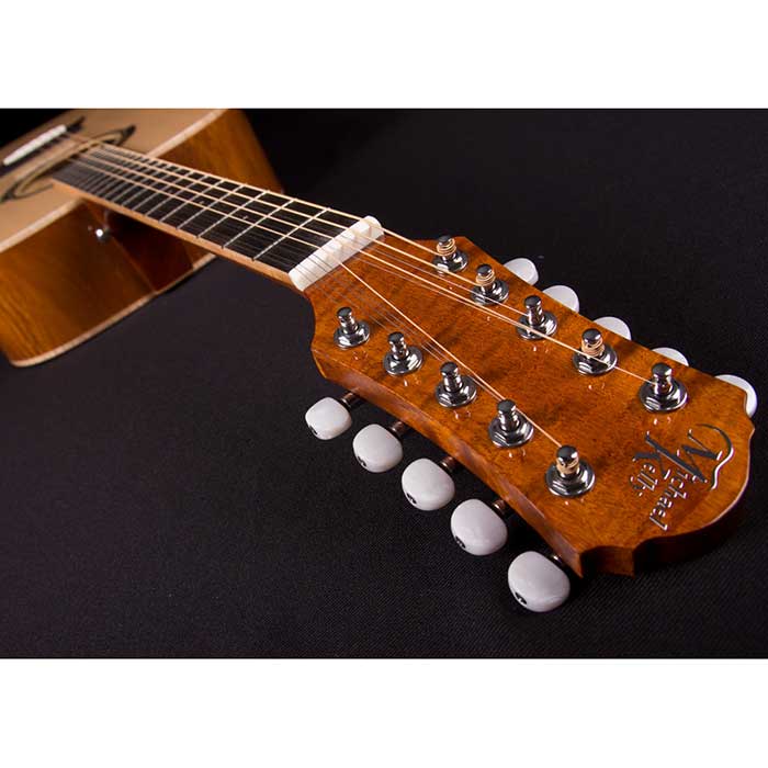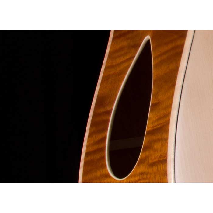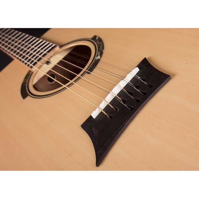 There may be no peers to the Triad 10E. In addition to the exotic woods and top shelf electronics, what sets this guitar apart is the 10 strings. Contrary to traditional 12 string guitars, the 10 string set up is comprised of doubling the first, second, third and fourth strings. This provides a level of clarity, the option of better articulation and enhanced playing range all while retaining that thick and special 12-string type of tone. Plug in and play your Triad 10 thanks to its active Fishman electronics system. The under saddle bridge captures the full 10 string tone. You can control the volume and adjust the tone with two onboard controls, located in the soundhole. Discrete, but very easy to use and all without any holes cut into the side of the instrument.