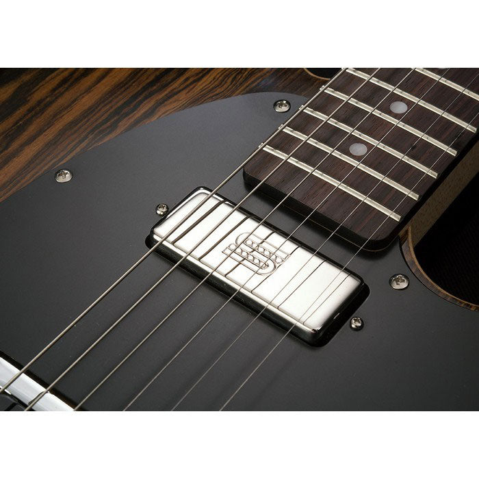 The Custom Collection 55 Striped Ebony features a striking striped ebony top, real flame maple binding and a great modernized design. It’s pickup configuration and Great 8 electronics mod have helped it stand out sonically. With the Mod Shop version we deliver something new thanks to a collaboration with Seymour Duncan pickups. For the Duncan Mod Shop 55 we chose pickups that provide a tremendous amount of versatility and pure vintage inspired tones. Our goal was to make this guitar a true “swiss army knife” to handle virtually any style of music. The only guitar you’d need for your gig. Stag Mag Bridge pickupThe Stag Mag is a high output bridge pickup designed specifically to give players a true classic “double-cut” single coil tone when switched into split mode which is part of our Great 8 wiring mod (details below). The Stag Mag has alnico 2 rod magnets with a traditional single-coil pole stagger, and a specially designed high output coil wind so the sound is bouncy and bright when coil split. When both coils are active in full humbucker mode, the tone is fat and smooth. Hand built in Santa Barbara, CA, the Stag Mag has a nickel silver bottom plate, and is vacuum wax potted for squeal-free performance.Seymourized Mini Humbucker Neck pickupThe Seymourized Mini Humbucker has been described as Seymour’s favorite pickup. The neck model in the Mod Shop 55 is designed so that each coil contains a high-carbon steel blade coupled to the bottom-loaded alnico 5 bar magnet. The tone has more midrange and clarity, and provides nice, even sounding chords with just a hint of snarl. Clean tones have a clear, snappiness, and distorted tones have a nice midrange growl. Hand made in Santa Barbara, CA and is vacuum wax potted for squeal free operation.Boutique Electronics Mod: Great 8 The Great 8 wiring mod allows either (or both) humbucking pickups to be coil split via 2 push/pull switches included on the master volume and tone control knobs. This combined with the 3-way pickup selector switch provides the player with 8 distinctive tonal options for covering a variety of musical styles