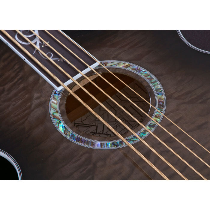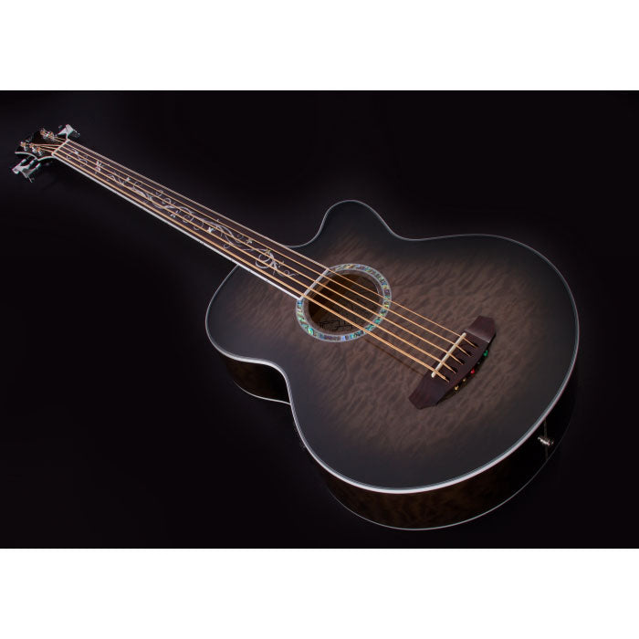 The Michael Kelly Dragonfly 5 acoustic bass brings beauty visually and tonally to your professional gig, worship service, or campfire jam. The signature Abalone and Pearl dragonfly inlay is eye-catching and distinctive — you’ll reach for it again and again.The Quilt Maple top and body pair with the 34” scale length and bring warmth and body to each song. The side dots alongside the fretless fingerboard are placed so that they are centered for each fret, and will help ensure you are right where you want to be on every note. The Fishman Presys + Bass™ electronics mean that you can plug in and play in any situation. The Standard C neck profile is comfortable and familiar as soon as you pick it up.Gig bag or hard case available.