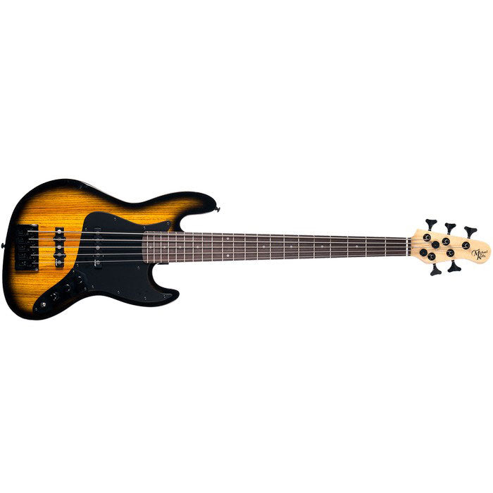 The Custom Collection Element 5 bass was designed for players who prefer a modernized take on a classic. The basic body lines might look familiar, but the MK designers took liberties to enhance comfort and playability. You can select from three different top woods, each accented with black hardware. What makes this bass special is far deeper than the striking appearance. We carefully selected each detail and spec to deliver a great bass for stage or studio. The impact of a bridge on the performance of a bass guitar is something that people too often underestimate. In fact, the bridge is key to many aspects of tone and we gave it the full respect that it deserved. You will see that we used a solid molded bridge with tight slots for each fully-adjustable saddle, a big enhancement on its own. We, however, took that further. Below that bridge is an aluminum tone block. We add that hidden block to add sustain and attack. Since it is aluminum, it does not add weight to the bass, but has a similar sonic impact to using a heavy bridge. We call this bridge-and-internal-block combination the MK Stealth Attack Bridge System. The pickups, controls, and electronics are another area where we did extensive testing and enhancements to get a great result. The pickups were developed specifically for the MK Element bass line by Rockfield and they have an over-wound classic pickup sonic performance. We blend that with our newly-developed Element Active Circuit that has been carefully tweaked to provide a modern sonic profile. Also key to our design was allowing excellent user customization potential using the onboard controls. Those controls include offering you a stacked tone pot with separate treble and bass controls. There is also a blend via a blend knob to sweep from one pickup to the other or varying degrees of each. Also included is a bypass switch allowing you to go from active to a very vintage passive tone with a quick click. Finally, to add to the comfort of this bass we built it using Red Cedar. This wood from the mahogany family is a great tonewood that allowed us to deliver the powerful sound that we were committed to. However it is a lighter weight wood which allowed us to reduce the overall instrument weight. This was something that had been requested by players and the careful combination of the woods and other design aspects makes the Custom Collection Element bass especially comfortable to play. There are many important aspects of the Custom Collection Element bass.