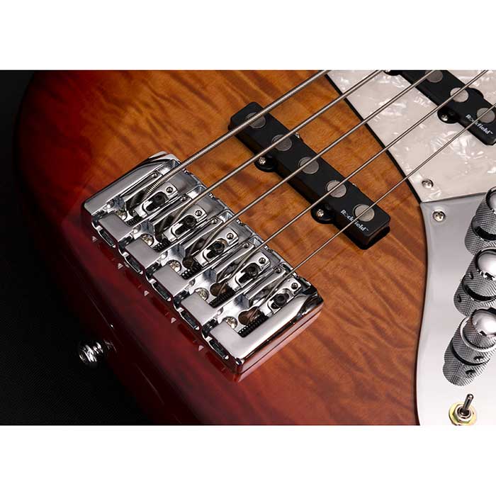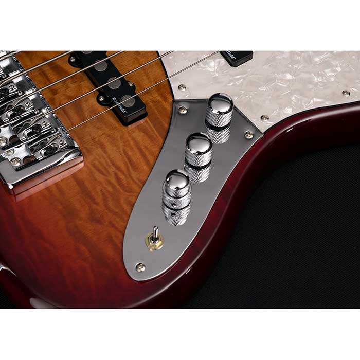 The Element 5Q is the perfect hard-working, every-day, gigging bass guitar. We designed it with a level of simple elegance that is a nod to vintage, but then tweaked it with a number of thoughtful upgrades to modernize it for the demands of today's player. The body shaping and contours have been evolved for more access and added comfort.The pickups, controls, and electronics are another area where extensive testing and enhancements gave us an amazing result. The pickups were developed specifically for the MK Element bass line by Rockfield and they have an over-wound classic pickup sonic performance. We blended that with our newly-developed Element Active Circuit that has been carefully tweaked to provide a modern sonic profile. Also key to our design was allowing excellent user customization potential using the onboard controls. Those controls include offering you a stacked tone pot with separate treble and bass controls. There is also a blend via a blend knob to sweep from one pickup to the other or varying degrees of each. Also included is a bypass switch allowing you to go from active to a very vintage passive tone with a quick click.