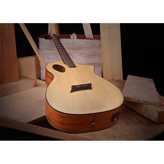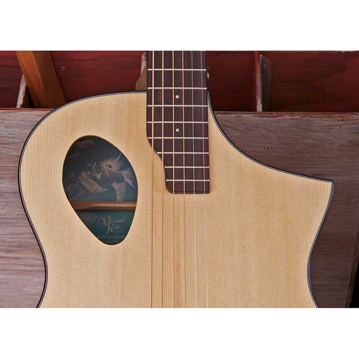 The Forte Port features Michael Kelly's Port Technology. This fresh new approach to top bracing and soundhole placement results in a noticeable improvement in sonic performance. It is dynamic, responsive and has a big bold sound. The Forte Port features an aggressive cutaway giving you more fingerboard access and great balance. The Forte Port is equipped with an active Fishman electronics system. The under saddle bridge pickup captures the full and natural sound of the Forte. You can control the volume and adjust the tone with two onboard controls, located in the soundhole. Discrete, but very easy to use and all without any holes cut into the side of the instrument.