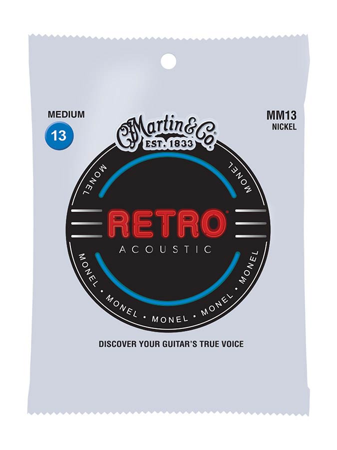 Martin Retro® strings are the real deal. Not an imitation. With Martin Retro® strings, you get one tough set that offers true, consistent tone and sounds like nothing else on the market. Martin’s solid nickel/copper alloy blend provides a reduced pick attack that allows the guitar’s tonewoods to be heard, not overshadowed. Martin’s proprietary Monel wrap wire is naturally corrosion resistant, so you can play them for a long time with nothing to get in the way of your music. Discover your guitar’s true voice.